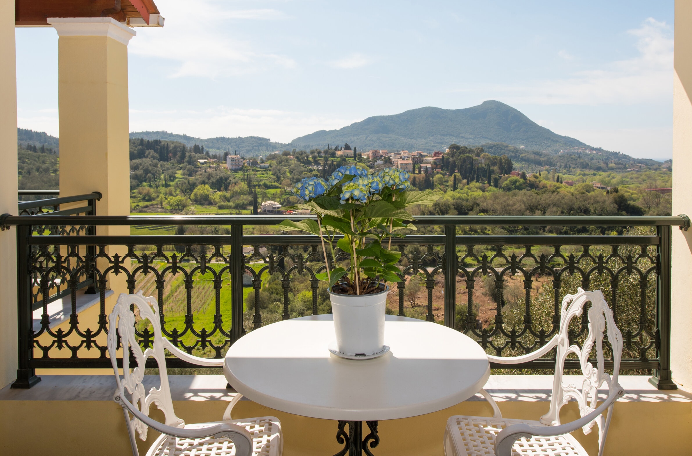 is located in the village of Kokkini, 10km west of Corfu town and airport and was built in 2004 on top of a small hill in a quiet area, away from neighboring houses, main streets, bars and discos, with an emphasis on Ionian architecture .